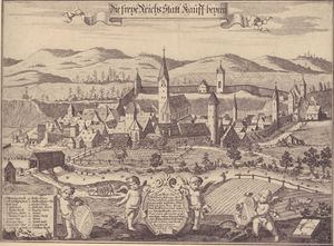 Stadtansicht nach Ernst Tobias Hörmann (1683-1761) um 1699. (Stadtarchiv Kaufbeuren)