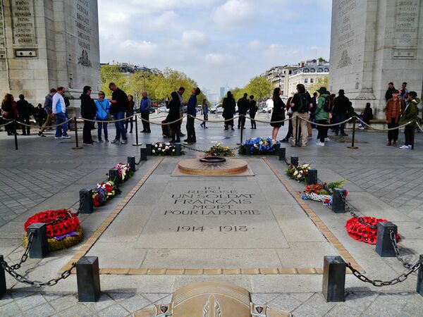 Das Grabmal des unbekannten Soldaten in Paris befindet sich unter dem Arc de Triomphe. Es wurde am 11. November 1920 eingeweiht. (Foto von Zairon, lizenziert durch CC BY-SA 4.0 via Wikimedia Commons)