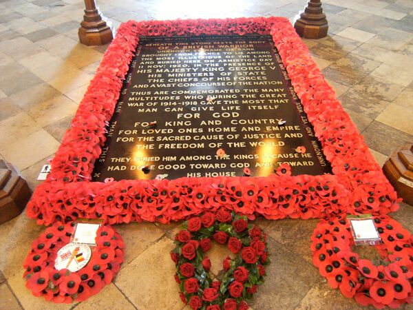 Das Grabmal des unbekannten Soldaten in London befindet sich in Westminster Abbey. Es wurde am 11. November 1920 eingeweiht. (Foto von Jacopo Werther, lizenziert durch CC BY-SA 2.0 via Wikimedia Commons)