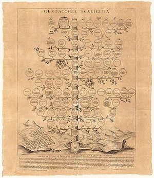 Neben ihrer Herrschaft in Verona werden die Skaliger noch in anderem Zusammenhang erwähnt: Der Späthumanist und Arzt Julius Caesar Scaliger (1480/90 -1518) wie auch sein Sohn, der Philosoph und Philologe Joseph Justus Scaliger (1540-1609), behaupteten, von der Familie della Scala abzustammen. Dies wird allerdings von der neueren Forschung als Familienlegende bezeichnet: Entgegen der Behauptung Julius Caesar Scaligers, ein Enkel von Niccolo della Scala zu sein, war sein Vater der Illustrator Benedetto Bordone; der Geburtsort dürfte Padua und nicht Riva gewesen sein. Auch das überlieferte Geburtsjahr 1484 lässt sich nicht erhärten. Immerhin verrät das von den Humanisten konstruierte Verwandtschaftsverhältnis etwas vom Weiterwirken der Faszination und der Wirksamkeit der Familie della Scala.