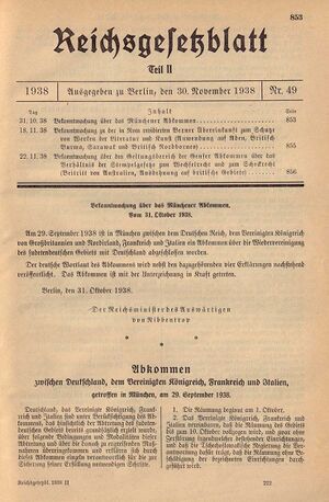 Christoph Studt, Münchener Abkommen, 1938, publiziert am 21.10.2022; in: Historisches Lexikon Bayerns, URL: <https://www.historisches-lexikon-bayerns.de/Lexikon/Münchener_Abkommen,_1938 (20.12.2025)