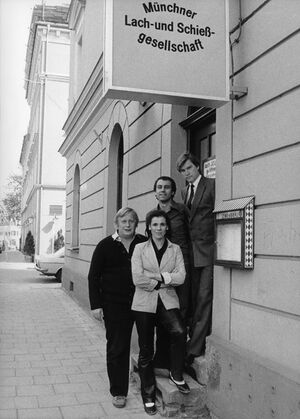 Die 1956 gegründete „Münchner Lach- und Schießgesellschaft“ zählt zu den bekanntesten deutschen Kabarettensembles. Unter der Leitung des Sportreporters und Regisseurs Sammy Drechsel (1925–1986) avancierte die Gruppe aus Ursula Noack (1918–1988), Hans Jürgen Diedrich (1923–2012), Klaus Havenstein (1922–1998), Dieter Hildebrandt (1927–2013) und dem später dazu gestoßenen Jürgen Scheller (1922–1996) zum für viele Jahre deutschlandweit führenden Kabarett, das v. a. das bundesdeutsche Zeitgeschehen mit satirischer Schärfe und komödiantischer Spielfreude sezierte und kommentierte und unzähligen Kabarettisten im deutschsprachigen Raum als Inspiration und Vorbild diente. Der 1972 aufgelösten Urtruppe folgten ab 1976 bei gleichbleibendem Namen weitere Gruppierungen mit wechselnden Mitgliedern, die trotz großer Erfolge nicht mehr den Ruhm des ersten Ensembles erlangten. Seit 2001 fungiert das in Schwabing gelegene Theater der „Münchner Lach- und Schießgesellschaft“ überwiegend als Gastspielbühne für wechselnde (Solo-)Künstlerinnen und Künstler, bildet aber weiterhin auch die Heimstätte eines sich personell häufig wandelnden Hausensembles.
