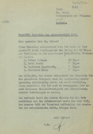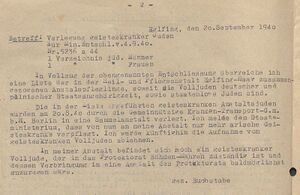 Obwohl ein Reichserlass im Dezember die Israelitische Heil- und Pflegeanstalt für Nerven- und Gemütskranke in Bendorf-Sayn (Rheinland-Pfalz) als künftig einzige Anstalt für jüdische Patientinnen und Patienten festlegte, wurden auch danach noch vereinzelt jüdische Anstaltsinsassen aus anderen Anstalten über das System der KZ- und Vernichtungslager getötet.