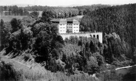 Schloss Grafeneck: Verwaltungs- und Wohngebäude der Tötungsanstalt Grafeneck, 1940. (Archiv Gedenkstätte Grafeneck, Dokumentationszentrum)