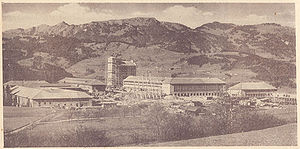 Baustelle der Ordensburg Sonthofen mit den fast fertiggestellten Gebäuden der ersten Bauphase. Abb. aus: Robert Ley, Der Weg zur Ordensburg, Berlin 1936. (Bayerische Staatsbibliothek, Bildarchiv hoff-71364)