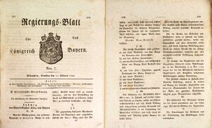Bekanntgabe der Verordnung zur Errichtung der Obersten Baubehörde 1830. Abb aus: Regierungsblatt für das Königreich Bayern, 1830, 177-180. (Bayerische Staatsbibliothek, BHS VIII D 4-1830)