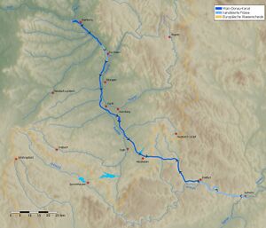 Karte des 1960 bis 1992 errichteten Rhein-Main-Donau-Kanals. (Abb. von Jailbird, lizenziert durch CC BY-SA 2.0 DE via Wikimedia Commons)