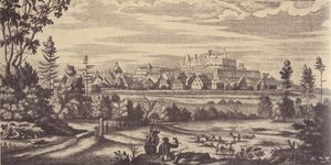Wallerstein. Kupferstich von Gabriel Bodenehr (1705-1792), um 1750. Abb. aus: Das Bayerland, Jahrgang 32 vom Mai 1921, 262. (Bayerische Staatsbibliothek, 4 Bavar. 198 tb-32)