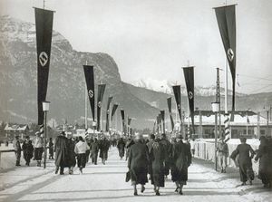 Allerdings änderte sich die Haltung der Nationalsozialisten nach der Machtübernahme abrupt. Um die Olympischen Spiele als Plattform der propagandistischen Außendarstellung zu instrumentalisieren, sollten sie als Friedensfest ohne politischen Charakter arrangiert werden. Das tatsächlich für den Krieg aufrüstende "Dritte Reich" sollte als vorgeblich friedliebende Nation präsentiert und die internationale Isolierung Deutschlands aufgebrochen werden. Das große olympische Spektakel in Berlin – mit Vorstufe in Garmisch-Partenkirchen – eignete sich hervorragend dazu, die Weltöffentlichkeit über den wahren Charakter des Nationalsozialismus zu täuschen.