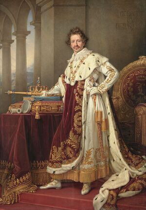 Ludwig I. im Krönungsornat, Gemälde von Joseph Karl Stieler (1781-1858), 1826. (bavarikon) (Bayerische Staatsgemäldesammlungen - Neue Pinakothek München Inv.-Nr. 1062, lizenziert durch (CC BY-SA 4.0)