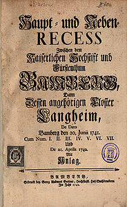 Titelblatt des Haupt- und Nebenrecess zwischen dem Hochstift Bamberg und Kloster Langheim, gedruckt 1741/42 in Bamberg. (Bayerische Staatsbibliothek, 4 Bavar. 3426 i)
