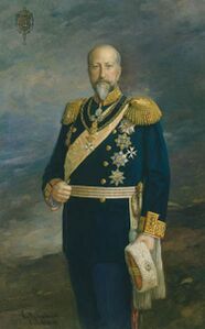 Zar Ferdinand von Bulgarien (1861-1948). Der Neffe von König Ferdinand II. von Portugal wurde 1887 Fürst von Bulgarien und 1908 nahm er den Zarentitel an. 1918 dankte er zugunsten seines Sohnes ab. Gemälde von Nicola Michailow (1876-1960), 1915. (Kunstsammlungen der Veste Coburg, Inventarnummer M.389, lizenziert durch CC BY-NC-SA 4.0 Deed)