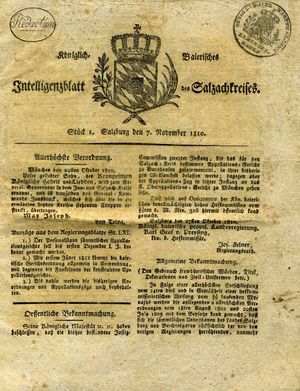 - Königlich-Baierisches Salzach Kreis-Blatt, München/Salzburg/Burghausen 1810-1817.
