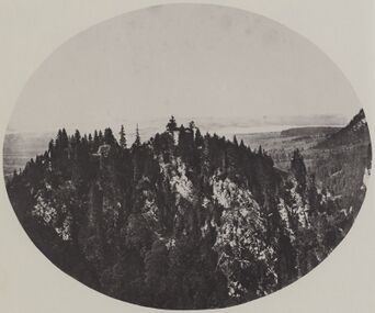 Burgfelsen mit den Ruinen der ehemaligen Burg Schwangau. Foto von Joseph Albert (1825-1886) um 1860. (Gemeinfrei via zeno.org)