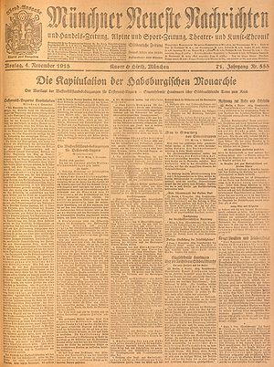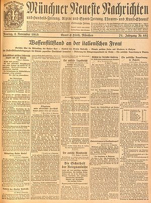 Spätestens seit der Kapitulation Österreich-Ungarns (3.11.1918) wurde der Abschluss eines Sonderfriedens in der bayerischen Presse und Öffentlichkeit erörtert. Durch den Verlust des deutschen Bündnispartners im Südosten erschienen die bayerischen Grenzen unmittelbar gefährdet. Zugleich war auf einen positiven Ausgang des Krieges nun kaum mehr zu hoffen.