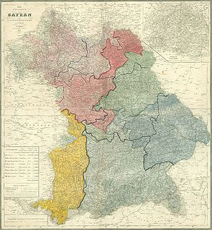Uebersichts-Karte der Neuesten Eintheilung des Königreichs Bayern. Nach der allerhöchsten Verordnung vom 29. November 1837. Karte von Heinrich Widmayer (ca. 1806-1866), München 1838. (Bayerische Staatsbibliothek, Mapp. XI,65)