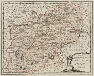 Karte des Herzogtums Ober- und Niederbayern, aus: Franz J. J. von Reilly, Schauplatz der Fünf Theile der Welt, Wien 1791. (Bayerische Staatsbibliothek, 4 Mapp. 90 m-2,1)
