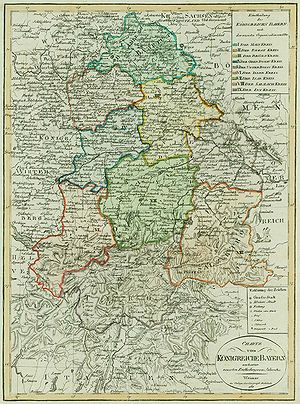 Die 1799 mit dem Tod Kurfürst Karl Theodors (1724-1799, reg. in Bayern 1777-1799) erloschene kurpfalzbayerische Linie wurde von der letzten verbliebenen wittelsbachischen Seitenlinie, den Herzögen von Pfalz-Zweibrücken-Birkenfeld, beerbt. Neuer bayerischer Kurfürst wurde Maximilian IV. Joseph (1756-1825, reg. 1799-1825). Er hatte nun sämtliche wittelsbachischen Lande - das aus der Vereinigung der Kurfürstentümer von der Pfalz und Bayern 1777 hervorgegangene Kurpfalzbayern sowie das Herzogtum Pfalz-Zweibrücken - in seiner Hand vereinigt. Allerdings waren die Besitzungen links des Rheins, darunter sein eigenes Stammland Pfalz-Zweibrücken, seit 1791 von Frankreich besetzt. Die politischen Umstände sollten zudem bald dazu führen, dass diese Besatzung faktisch zu einer Gebietsabtretung wurde: Der nach der Niederlage des Reiches und seiner Alliierten gegen Frankreich im 2. Koalitionskrieg 1801 geschlossene Friede von Lunéville (Frankreich) besiegelte die Abtretung des linken Rheinufers endgültig. Für das Kurfürstentum Pfalzbayern gingen damit die Herzogtümer Jülich, Pfalz-Zweibrücken und Pfalz-Simmern, die Fürstentümer Lautern und Veldenz, das Marquisat Bergopzoom, die Herrschaft Ravenstein sowie die übrigen in Belgien und im Elsass gelegenen wittelsbachischen Besitzungen verloren; von der Kurpfalz verblieben nur noch die rechtsrheinischen Gebietsanteile mit Mannheim (Baden-Württemberg) und Heidelberg (Baden-Württemberg).
