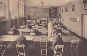 Gewerbliches Fachzeichnen im beruflichen Unterricht der Gefangenenschule Landsberg. Abb. aus: Das Bayerland, Jahrgang 37 vom März 1926, 181. (Bayerische Staatsbibliothek, 4 Bavar. 198 t-37)