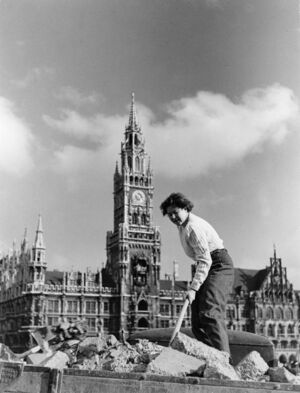 Nicole Kramer, Trümmerfrauen, publiziert am 18.01.2021; in: Historisches Lexikon Bayerns, URL: <http://www.historisches-lexikon-bayerns.de/Lexikon/Trümmerfrauen> (21.12.2025)