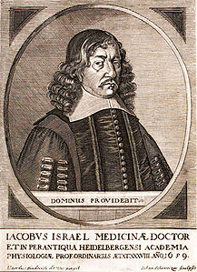 1652 wurde der jüdische Mediziner Jakob Israel (1621-1674) an die Universität Heidelberg berufen. Kupferstich um 1663. (Österreichische Nationalbibliothek, Bildarchiv und Grafiksammlung, Porträtsammlung, Inventar-Nr. PORT_00073873_01)