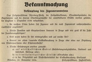 Frühe Maßnahmen gegen Sinti und Roma in Bayern