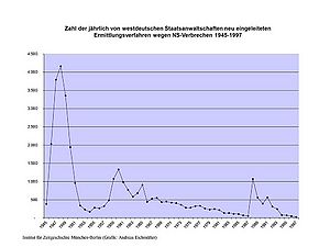 Festgehalten werden muss, dass die westdeutsche Justiz mit der Strafverfolgung von NS-Verbrechen vor eine Herausforderung gestellt war, wie sie Rechtspflegeorganen niemals zuvor begegnet war. Überdies wurden die NS-Prozesse über viele Jahre hinweg gegen den erklärten Willen der Mehrheit der Deutschen durchgeführt. Denn je länger die Ahndung dauerte, desto größer war der Unwillen der Bevölkerung. Ende der 1950er Jahre war noch mehr als die Hälfte der Befragten für eine Fortsetzung der Strafverfolgung, doch bereits Mitte der 1960er Jahre votierte die Mehrheit der Befragten für einen Schlussstrich. 1969 traten 70 % für eine Beendigung der Strafverfolgung ein; 1975 wollten nur 25 % der Deutschen noch eine justizielle Ahndung von NS-Verbrechen sehen. Die Rufe nach dem "Schlussstrich" unter die Vergangenheit sind mittlerweile verstummt; das öffentliche Gedenken an die Verbrechen ist zum nationalen Projekt geworden. Die justizielle Aufarbeitung der NS-Verbrechen hat an diesem Mentalitätswandel der Deutschen einen nicht zu unterschätzenden Anteil gehabt.