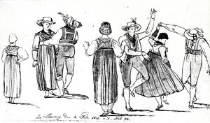 Die tänzerische Überlieferung setzt mit den älteren Schreit- und Reigentanzformen ein (ab Mitte 16. Jahrhundert), ihnen schließen sich die Kontratanzformen wie die "Achter" und "Sechser" des Alpenvorlandes oder die städtische "Française" sowie die regional unterschiedlich ausgeprägten Ländler- und Dreherformen an. Der "Wiener Walzer" eroberte ab den 1820er Jahren die Tanzböden in Stadt und Land, ebenso wie "Polka" (tschechischer Ursprung) und "Mazurka" (polnischer Ursprung). Markant sind Figurentänze (z. B. "Hans Adam", "Neubairischer", "Siebenschritt", "Bauernmadel", "Neukatholischer", "Waldjäger"), die für Ober- und Niederbayern sowie die Oberpfalz früh dokumentiert sind. Niederbayern ragt darunter als besonders reichhaltige Region hervor, was allerdings auch an der Überlieferungsdichte liegen kann. Für Franken sind besonders die Tanzbeschreibungen von Hans von der Au ab den 1930er Jahren zu nennen. Eine deutsche Besonderheit sind die ehedem nur in der Oberpfalz, Niederbayern, dem nördlichen Schwaben (dort unter dem Begriff "Schleifer" bzw. "Schweinauer") sowie dem südöstlichen Mittelfranken und dem böhmischen Egerland heimischen taktwechselnden Tänze in Form der Zwiefachen.
