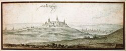 Blick auf die Festung Marienberg von Westen mit Echterbastei und vorgelegtem Hornwerk, Zeichnung von Vaclav (Wenzel) Hollar (1607-1677) von 1636. Standort: Werner Forman Archiv/Nationalgalerie Prag. (Werner Forman / Universal Images Group via Britannica ImageQuest)