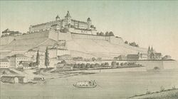 Ansicht der Festung Marienberg. Lithographie von 1871. Abb. aus: Carl Heffner, Würzburg und seine Umgebungen, Würzburg 1871, 631. (Bayerische Staatsbibliothek, Bildarchiv)