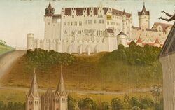 Ansicht der Festung Marienberg in einem Gemälde vom Martyrium des Hl. Kilian und seiner Gefährten. Hersteller: Nürnberger Meister um 1475. Standort: Fotoarchiv Museum für Franken, Foto: H. J. Wiehr. (Leihgabe der Stadt Würzburg im Museum für Franken - Staatliches Museum für Kunst- und Kulturgeschichte in Würzburg, 43883 [Ausschnitt])