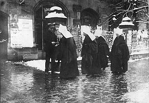 Erstmals durften 1919 auch Frauen sowohl auf Landes- als auch auf Reichsebene wählen. Hier Nonnen vor einem Wahllokal in München bei der Reichstagswahl am 19. Januar 1919. (Bundesarchiv, Bild 146-1993-088-09-A / CC-BY-SA 3.0)