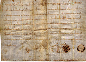 1. Dezember 811, Aachen: Kaiser Karl der Große (747-814)bestätigt dem Grafen Bennit des Besitz von Rodungen zwischen Werra und Fulda. Edition bei MGH Diplomatum Karolinorum Bd. 1, 284. (Staatsarchiv Würzburg, Hochstift Würzburg, Urk. 811 Dez. I.)