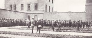 Gefangene im Hof des Münchner Gefängnisses Stadelheim. Abb. aus: Das Bayerland 44, (1933), 600. (Bayerische Staatsbibliothek, Bavar 198-t)