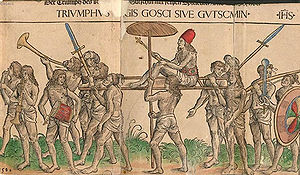 Holzschnitt aus Balthasar Sprenger, Die Merfart vn[d erfarung nüwer Schiffung vnd Wege zu viln onerkanten Jnseln vnd Künigreichen von dem großmechtigen Portugalische[n Kunig Emanuel Erforscht funden bestritten vnnd Jngenomen, [Oppenheim] 1509].