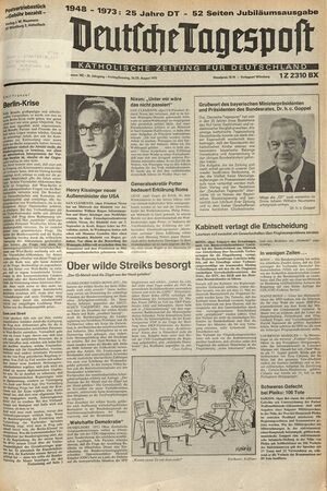 Titelblatt der Jubiläumsausgabe der Tagespost vom 24./25.8.1973 (25 Jahre). ...