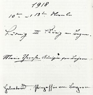 Die Eintragung der bayerischen Königsfamilie im Gästebuch von Schloss ...