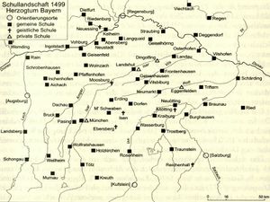 Schullandschaft im Herzogtum Bayern 1499 (Karte von Reinhard Jakob ...