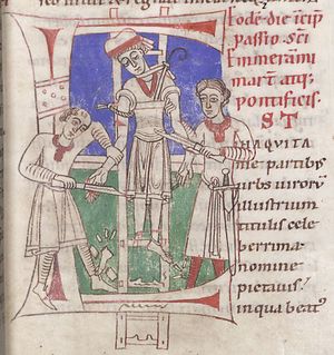Initiale mit Darstellung des Martyriums des heiligen Emmeram. Abb. ...