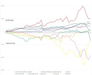 Ausgleichsbeiträge (-) und Ausgleichszuweisungen der einzelnen Länderim Länderfinanzausgleich (in ...