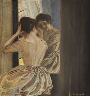 Ludwig von Herterich (1856-1932), Mächen vor Spiegel, Foto von ...