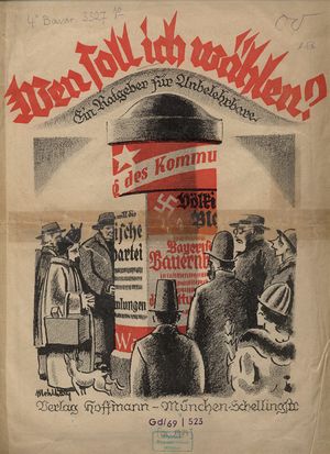 Populistische Wahlkampfbroschüre des Völkischen Blocks [Titelblatt], gestaltet und herausgegeben ...