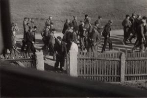 Gefangene (vermutlich aus Nürnberg) auf dem Todesmarsch nach Dachau. ...