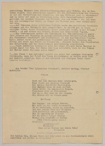 Inhalt des Entwurfs für ein siebtes Flugblatt der 'Weissen Rose' von Christoph Probst. (Bundesarchiv, R 3017/34635)