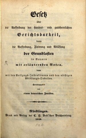 Titelblatt, Gesetz über die Aufhebung der standes- und gutsherrlichen ...