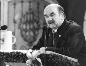 Walter Sedlmayr als Salvatorredner beim Starkbieranstich auf dem Nockherberg, ...