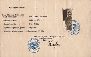Kinderausweis von Johanna Gräfin von Zech (1921-1939). (Foto: Privat) ...