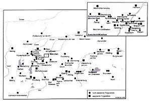 Karte mit den Fundorten von Flechtwerkskulptur in Bayern. (Sonja ...