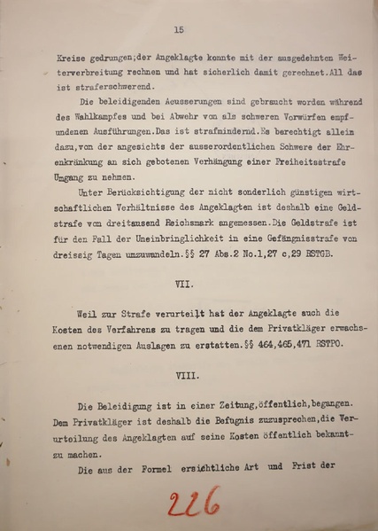 Urteil im Dolchstossprozess 1925. (Staatsarchiv München, AG 69108)