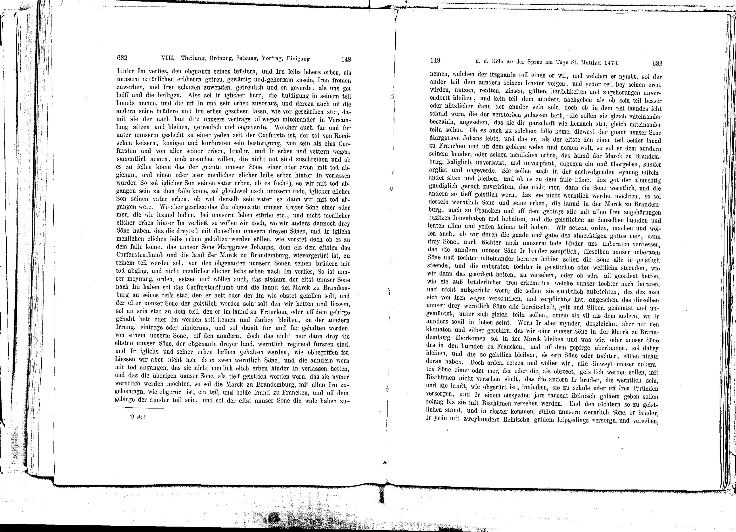 Dispositio Achillea 1473. Abgedruckt in: Schulze, Die Hausgesetze der regierenden deutschen Fürstenhäuser, Bd. 3, Jena 1882. 659-667. (Bayerische Staatsbibliothek, J.publ.g. 741 ph-3)